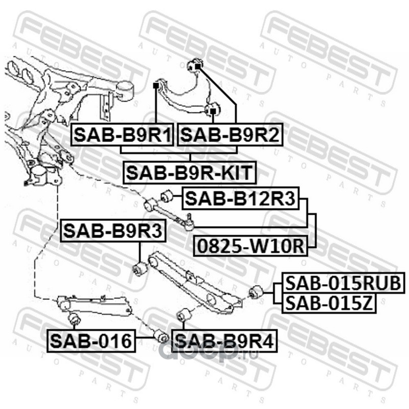 All World Cars - продажа Сайлентблок заднего верхнего рычага артикул SABB9RKIT по всей России и странах СНГ. Развитая сеть представительств с быстрой доставкой товаров бренда Febest и гарантией выгодной цены. Покупая в AWC товар Febest каталожный номер SABB9RKIT вы бережете свое время, нервы и деньги.