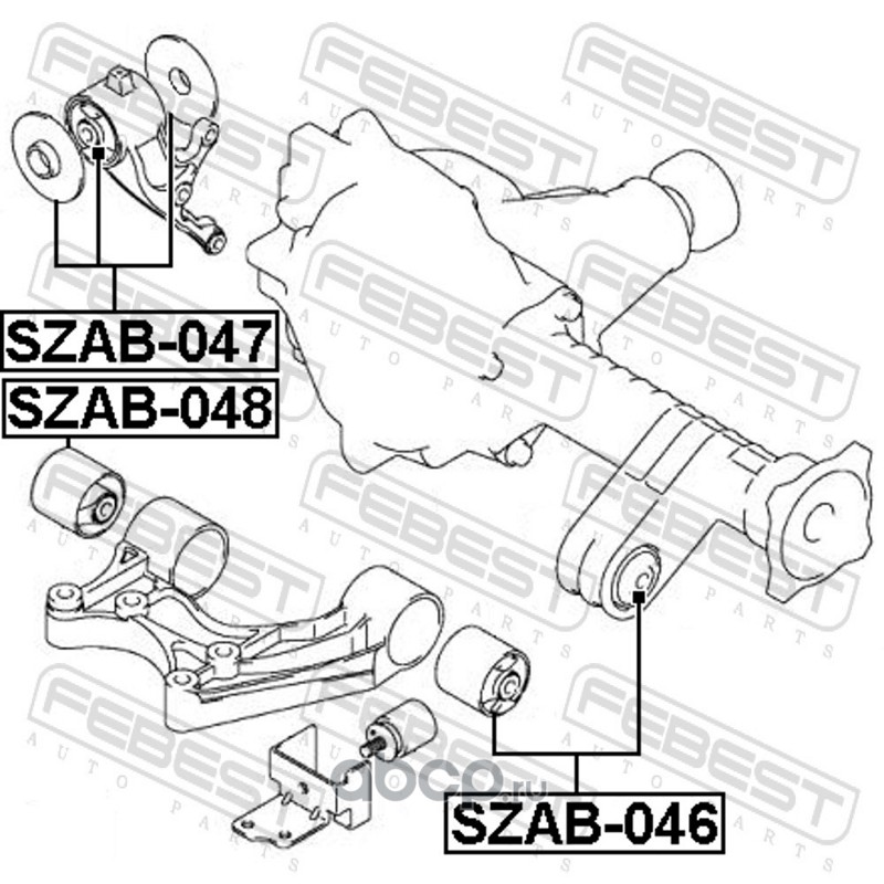 All World Cars - продажа сайленблок передней подушки дифференциала артикул SZAB046 по всей России и странах СНГ. Развитая сеть представительств с быстрой доставкой товаров бренда Febest и гарантией выгодной цены. Покупая в AWC товар Febest каталожный номер SZAB046 вы бережете свое время, нервы и деньги.