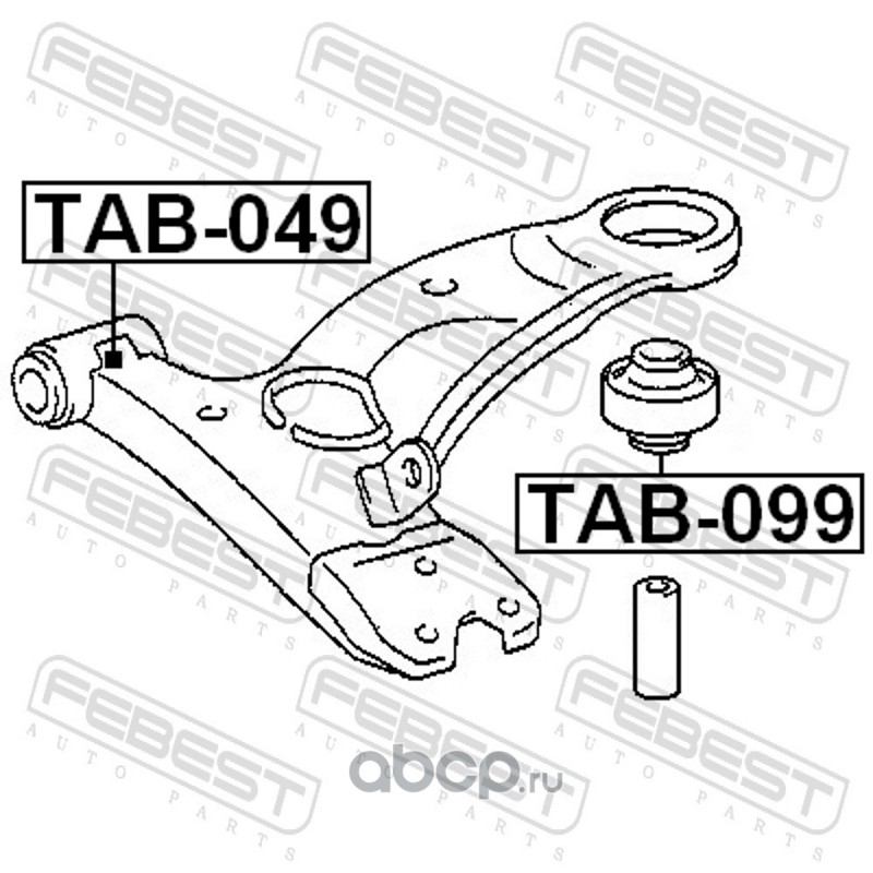 All World Cars - продажа Сайлентблок переднего рычага задний артикул TAB049 по всей России и странах СНГ. Развитая сеть представительств с быстрой доставкой товаров бренда Febest и гарантией выгодной цены. Покупая в AWC товар Febest каталожный номер TAB049 вы бережете свое время, нервы и деньги.