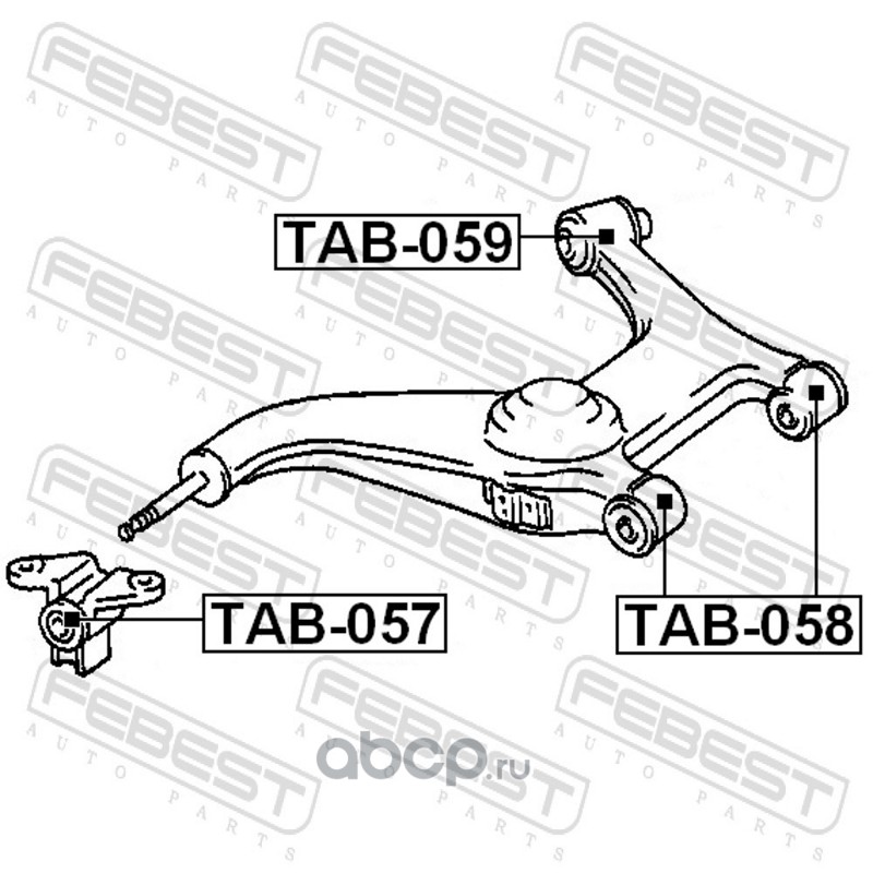 All World Cars - продажа сайленблок заднего рычага артикул TAB057 по всей России и странах СНГ. Развитая сеть представительств с быстрой доставкой товаров бренда Febest и гарантией выгодной цены. Покупая в AWC товар Febest каталожный номер TAB057 вы бережете свое время, нервы и деньги.