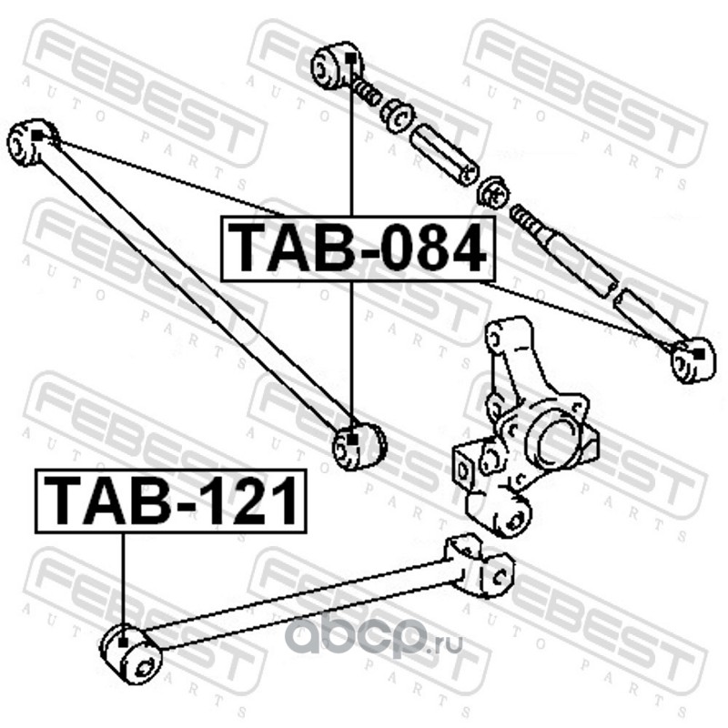 All World Cars - продажа Сайлентблок заднего рычага поперечный задний артикул TAB084 по всей России и странах СНГ. Развитая сеть представительств с быстрой доставкой товаров бренда Febest и гарантией выгодной цены. Покупая в AWC товар Febest каталожный номер TAB084 вы бережете свое время, нервы и деньги.