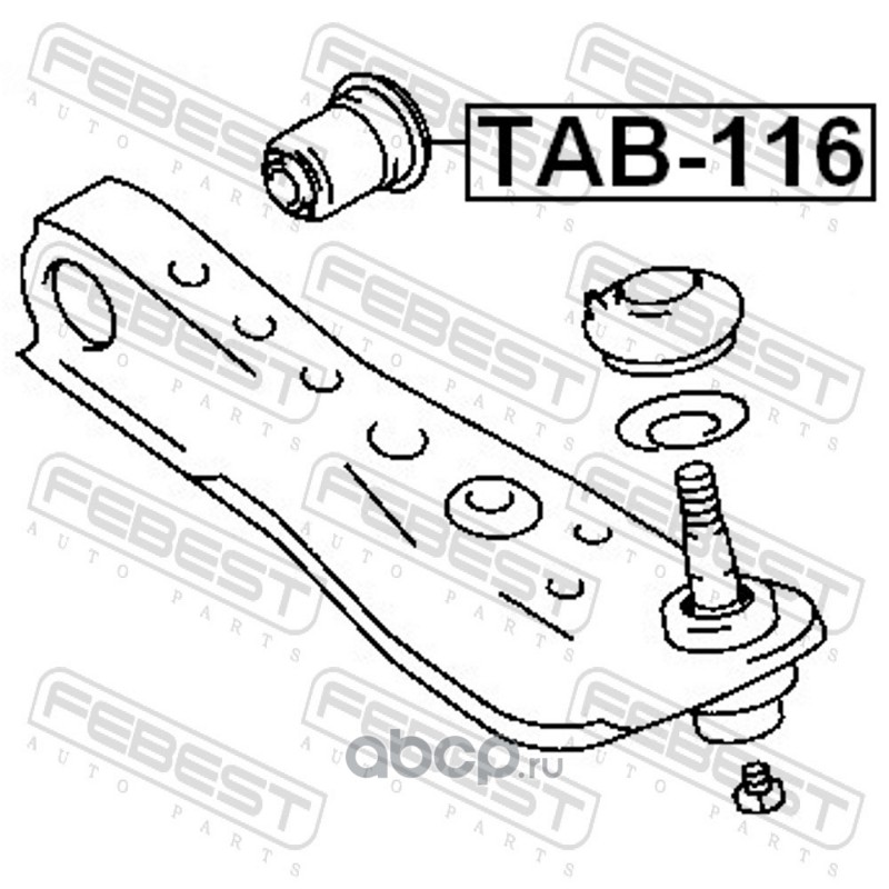 All World Cars - продажа Сайлентблок нижнего переднего рычага артикул TAB116 по всей России и странах СНГ. Развитая сеть представительств с быстрой доставкой товаров бренда Febest и гарантией выгодной цены. Покупая в AWC товар Febest каталожный номер TAB116 вы бережете свое время, нервы и деньги.