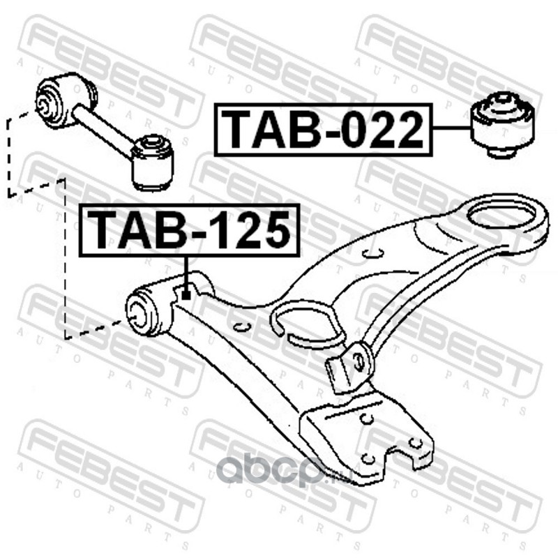 All World Cars - продажа Сайлентблок передний переднего рычага артикул TAB125 по всей России и странах СНГ. Развитая сеть представительств с быстрой доставкой товаров бренда Febest и гарантией выгодной цены. Покупая в AWC товар Febest каталожный номер TAB125 вы бережете свое время, нервы и деньги.