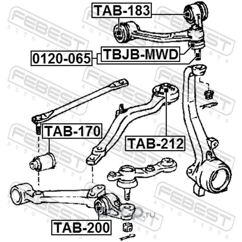 All World Cars - продажа Сайлентблок рычага подвески артикул TAB200 по всей России и странах СНГ. Развитая сеть представительств с быстрой доставкой товаров бренда Febest и гарантией выгодной цены. Покупая в AWC товар Febest каталожный номер TAB200 вы бережете свое время, нервы и деньги.