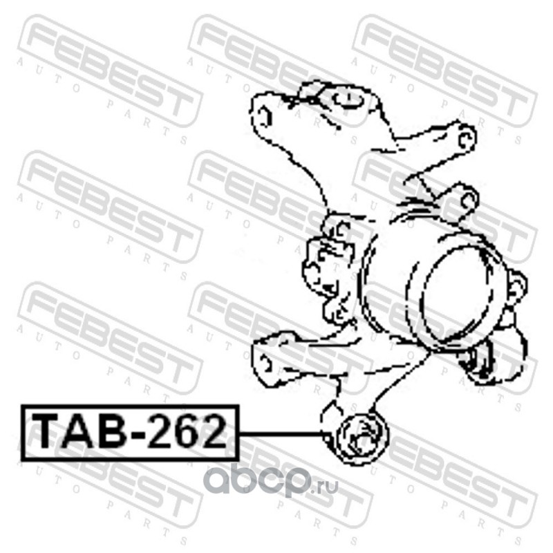 All World Cars - продажа Сайлентблок задней цапфы артикул TAB262 по всей России и странах СНГ. Развитая сеть представительств с быстрой доставкой товаров бренда Febest и гарантией выгодной цены. Покупая в AWC товар Febest каталожный номер TAB262 вы бережете свое время, нервы и деньги.