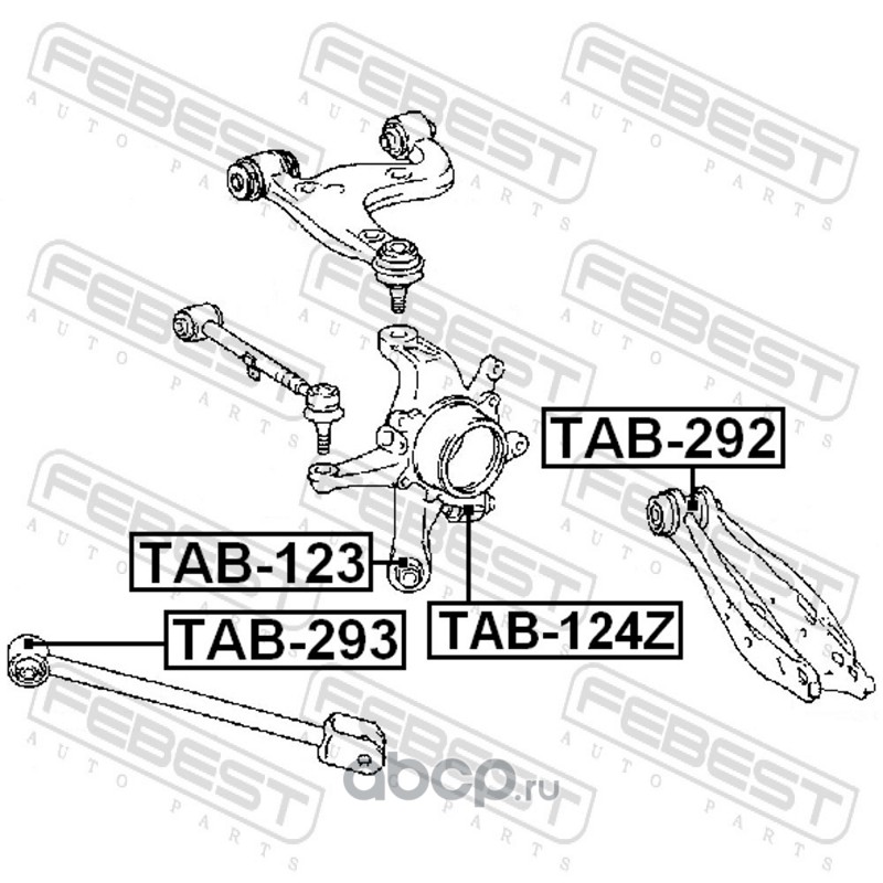 All World Cars - продажа Сайлентблок заднего поперечного рычага артикул TAB292 по всей России и странах СНГ. Развитая сеть представительств с быстрой доставкой товаров бренда Febest и гарантией выгодной цены. Покупая в AWC товар Febest каталожный номер TAB292 вы бережете свое время, нервы и деньги.