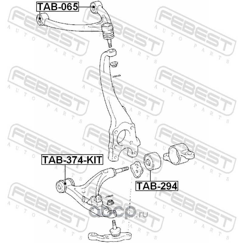 All World Cars - продажа Сайлентблок переднего рычага комплект артикул TAB374KIT по всей России и странах СНГ. Развитая сеть представительств с быстрой доставкой товаров бренда Febest и гарантией выгодной цены. Покупая в AWC товар Febest каталожный номер TAB374KIT вы бережете свое время, нервы и деньги.