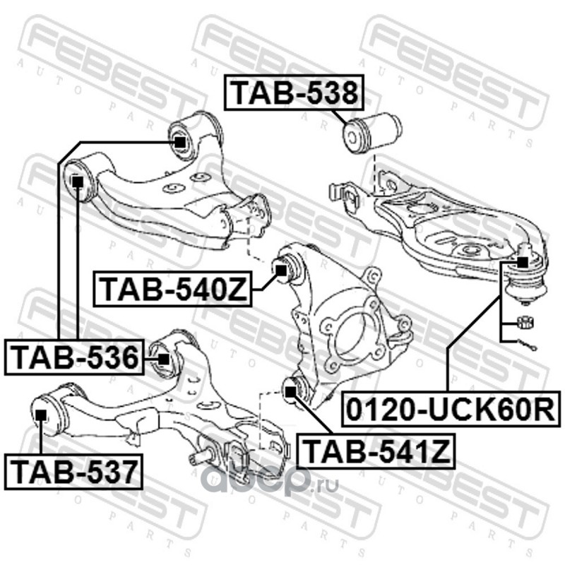 All World Cars - продажа Сайлентблок задней цапфы артикул TAB541Z по всей России и странах СНГ. Развитая сеть представительств с быстрой доставкой товаров бренда Febest и гарантией выгодной цены. Покупая в AWC товар Febest каталожный номер TAB541Z вы бережете свое время, нервы и деньги.