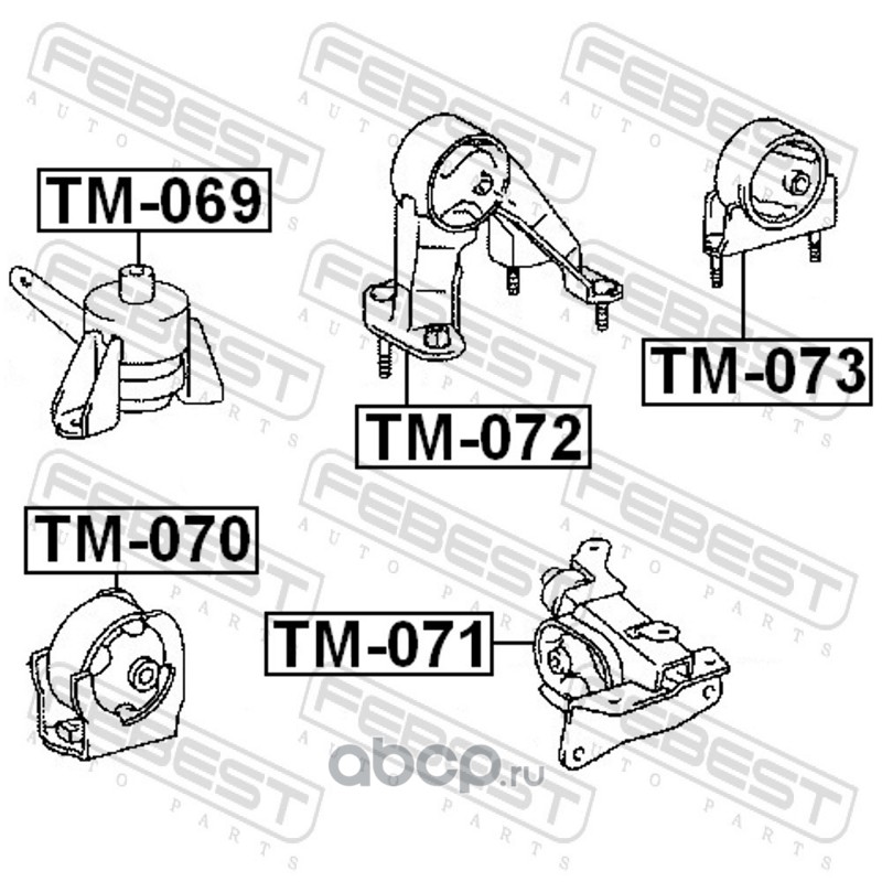 All World Cars - продажа Опора двигателя артикул TM070 по всей России и странах СНГ. Развитая сеть представительств с быстрой доставкой товаров бренда Febest и гарантией выгодной цены. Покупая в AWC товар Febest каталожный номер TM070 вы бережете свое время, нервы и деньги.