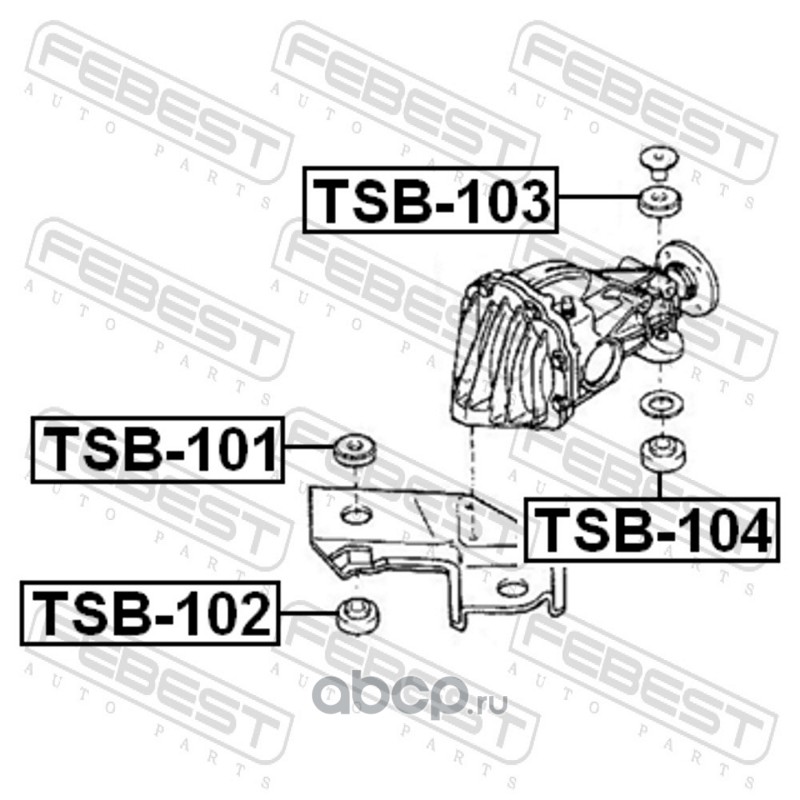 All World Cars - продажа Втулка дифференциала артикул TSB104 по всей России и странах СНГ. Развитая сеть представительств с быстрой доставкой товаров бренда Febest и гарантией выгодной цены. Покупая в AWC товар Febest каталожный номер TSB104 вы бережете свое время, нервы и деньги.