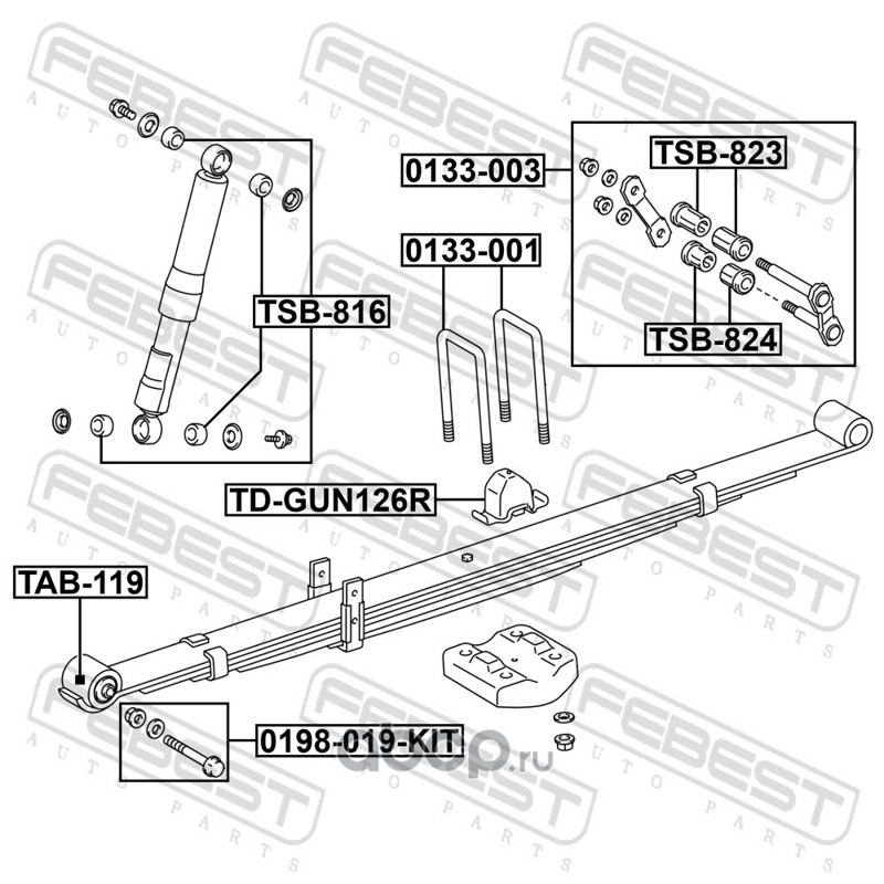 Febest 0133002 Скоба задней рессоры ремкомплект