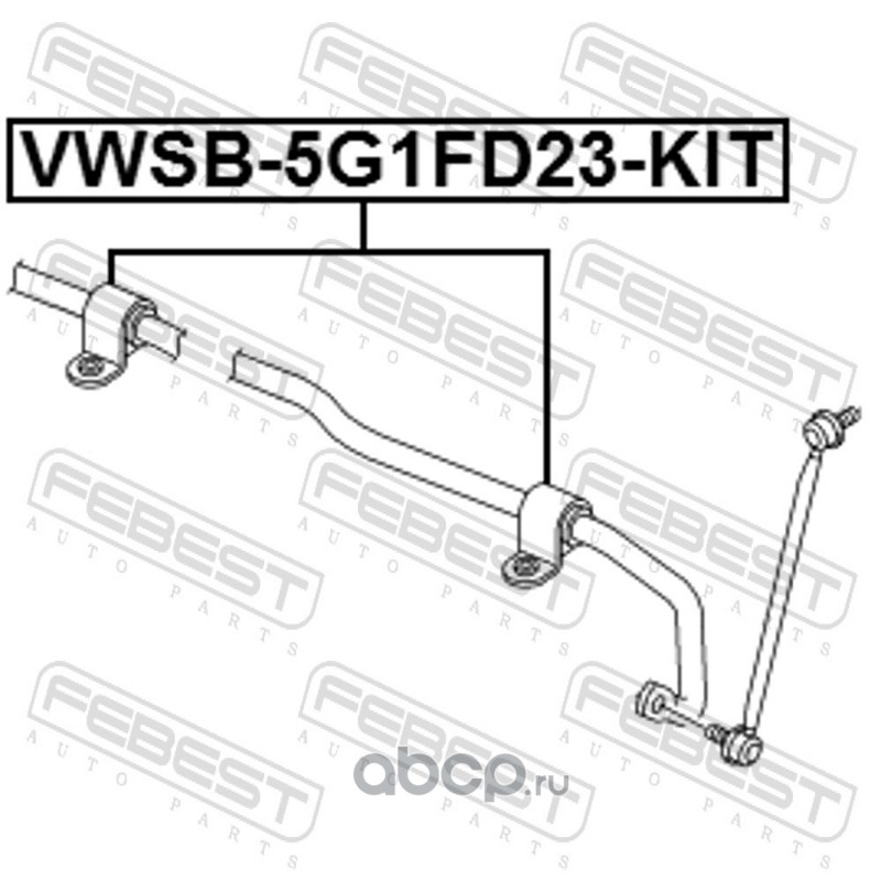 All World Cars - продажа Втулка переднего стабилизатора комплект d23.2 артикул VWSB5G1FD23KIT по всей России и странах СНГ. Развитая сеть представительств с быстрой доставкой товаров бренда Febest и гарантией выгодной цены. Покупая в AWC товар Febest каталожный номер VWSB5G1FD23KIT вы бережете свое время, нервы и деньги.