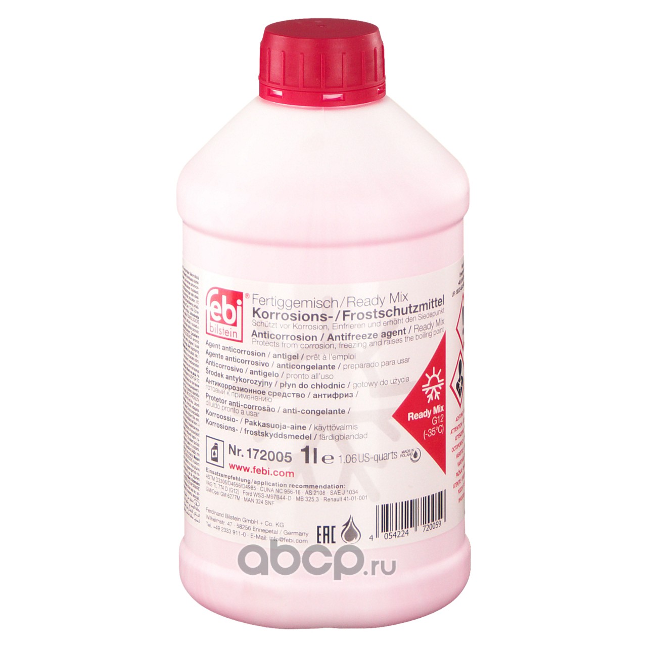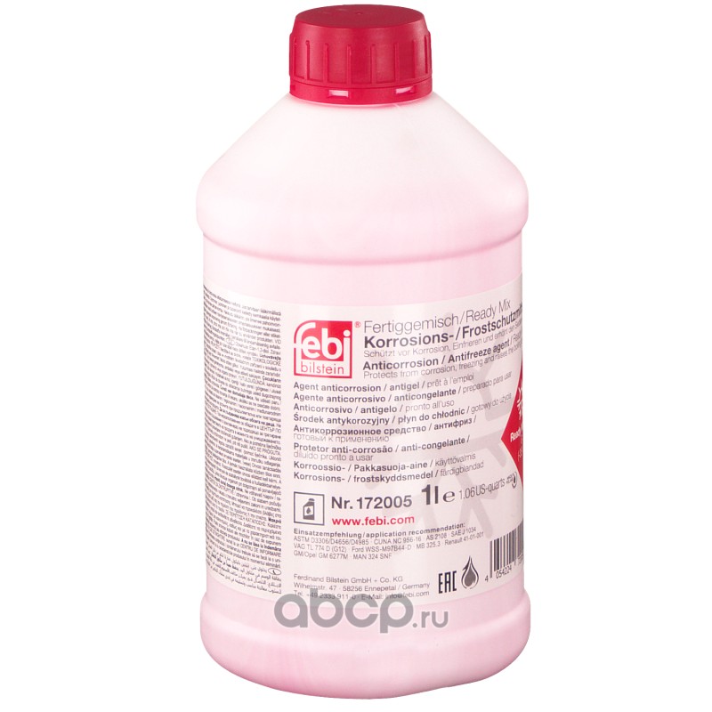 All World Cars - продажа Жидкость охлаждающая красная 1L артикул 172005 по всей России и странах СНГ. Развитая сеть представительств с быстрой доставкой товаров бренда Febi и гарантией выгодной цены. Покупая в AWC товар Febi каталожный номер 172005 вы бережете свое время, нервы и деньги.