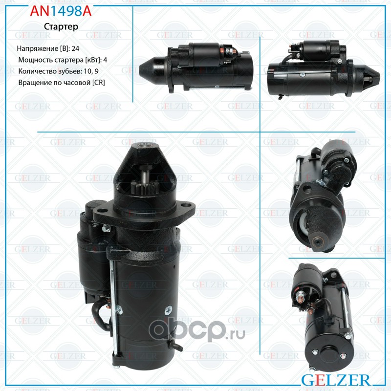 Стартер редукторный, МАЗ, ПАЗ, ЛИАЗ, УРАЛ, ГАЗ, дв. ЯМЗ, 24 В, 4.0 кВт, 10 зуб. |