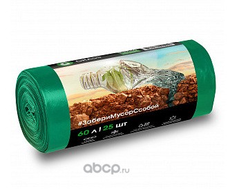 Мешок для мусора ПНД в рулоне 60 л. 55*65 13 мкр (зеленый) (рул. 25 шт)