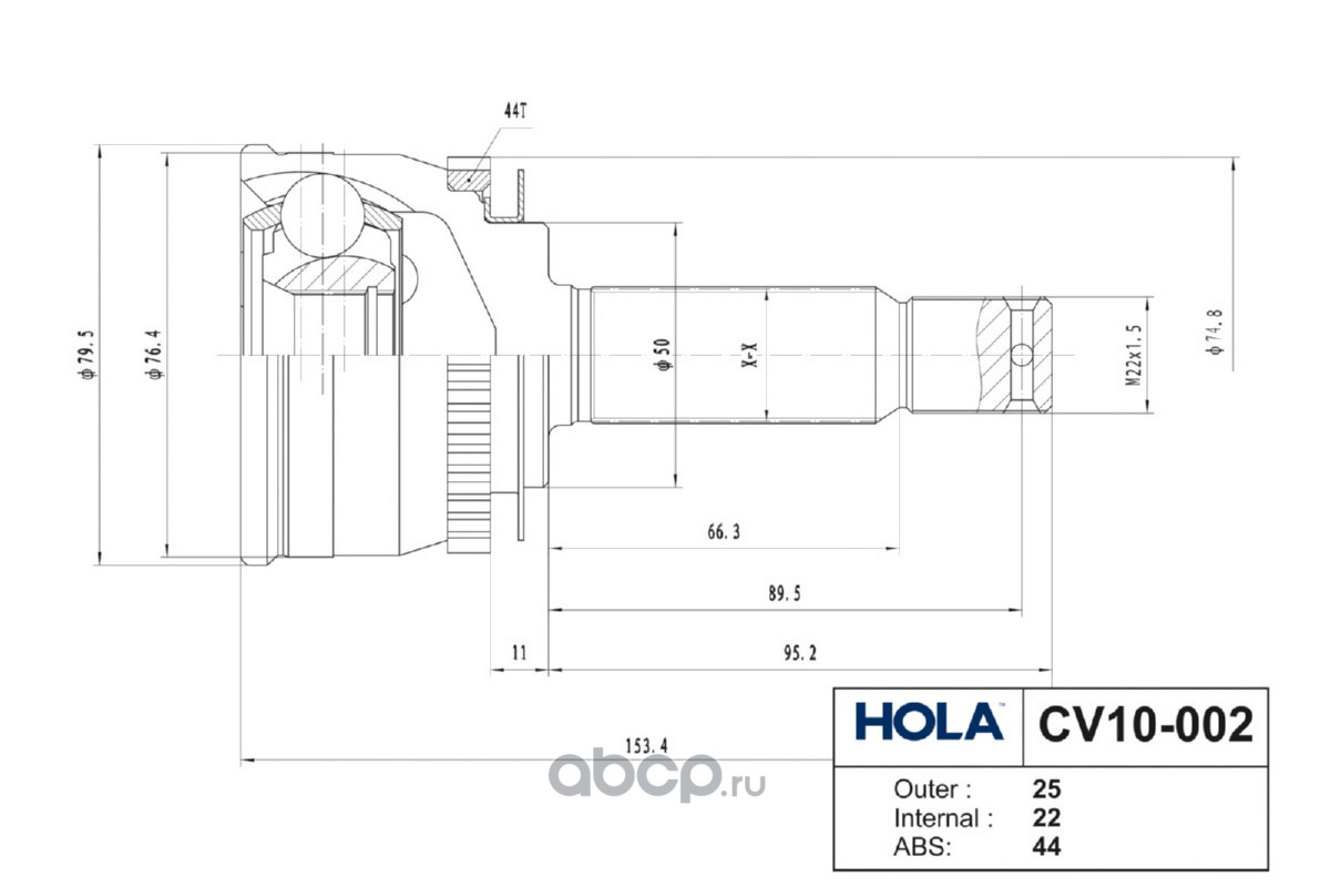 Расширенное описание: CV10-002, HOLA, ШРУС, наружный, левый/правый, 25/22 шл., HYUNDAI Accent II (LC) (кольцо ABS ближе к валу/колесу), (1шт.)