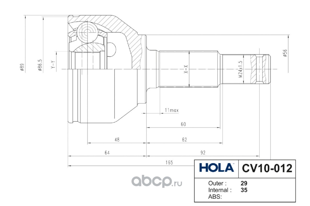 Расширенное описание: CV10-012, HOLA, ШРУС, наружный, левый/правый, 29/35 шл., NISSAN Qashqai (J10) 2.0, Qashqai +2 (JJ10) 2.0, X-Trail (T31), (1шт.)