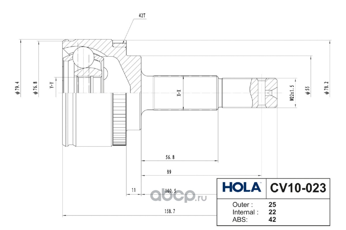Расширенное описание: CV10-023, HOLA, ШРУС, наружный, левый/правый, 25/22 шл., NISSAN Almera Classic (+ ABS), Almera II (N16) (+ ABS), (1шт.)