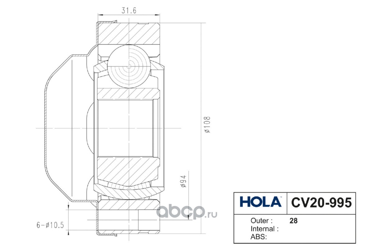 Расширенное описание: CV20-995, HOLA, ШРУС, внутренний, левый/правый, 28 шл., SKODA Octavia (A5,A7), Superb II, Yeti (5L), Fabia (II/III); VW Tiguan (5N), Passat (3C2), Golf (IV/V/VI/VII),Jetta (III/IV), Touran; AUDI A3 (8