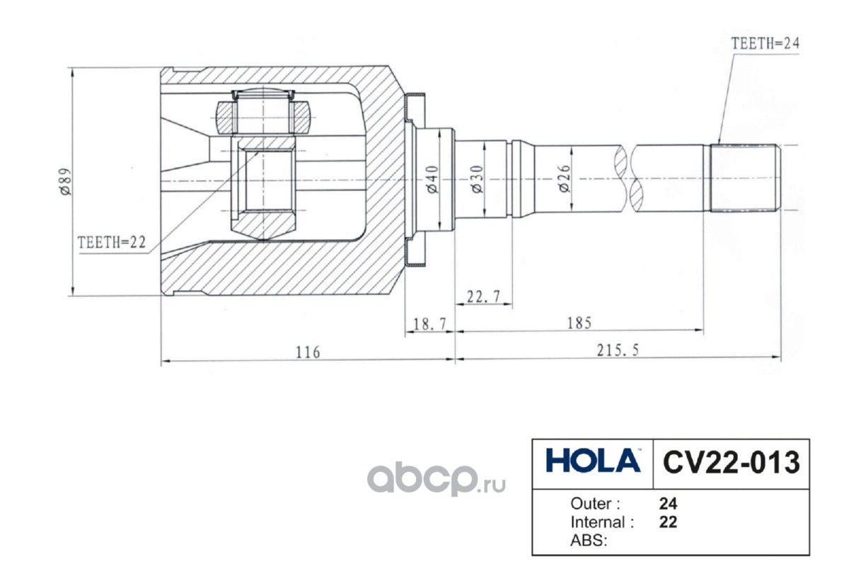 Расширенное описание: CV22-013, HOLA, ШРУС, внутренний, правый, 24 шлица, трипоид, CHEVROLET Niva (2123); LADA 4x4 (21214) с 2003г., 4x4m, (1шт.)