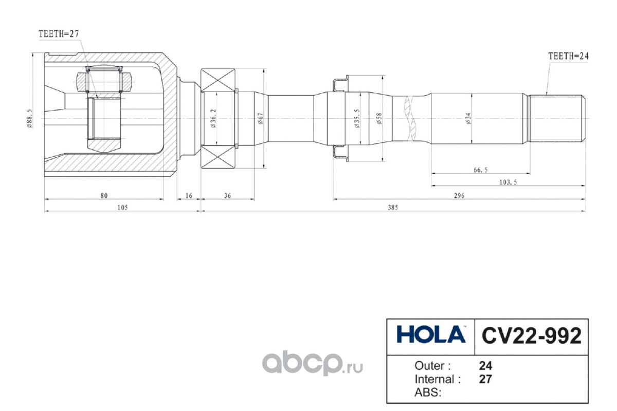 Расширенное описание: CV22-992, HOLA, ШРУС, внутренний, правый, 24/27 шл., TOYOTA RAV 4 IV 2.5 AT, RAV 4 III 2.0, 2.4 AT, Alhard/Vellfire (H2) 3.5 AT, (1шт.)