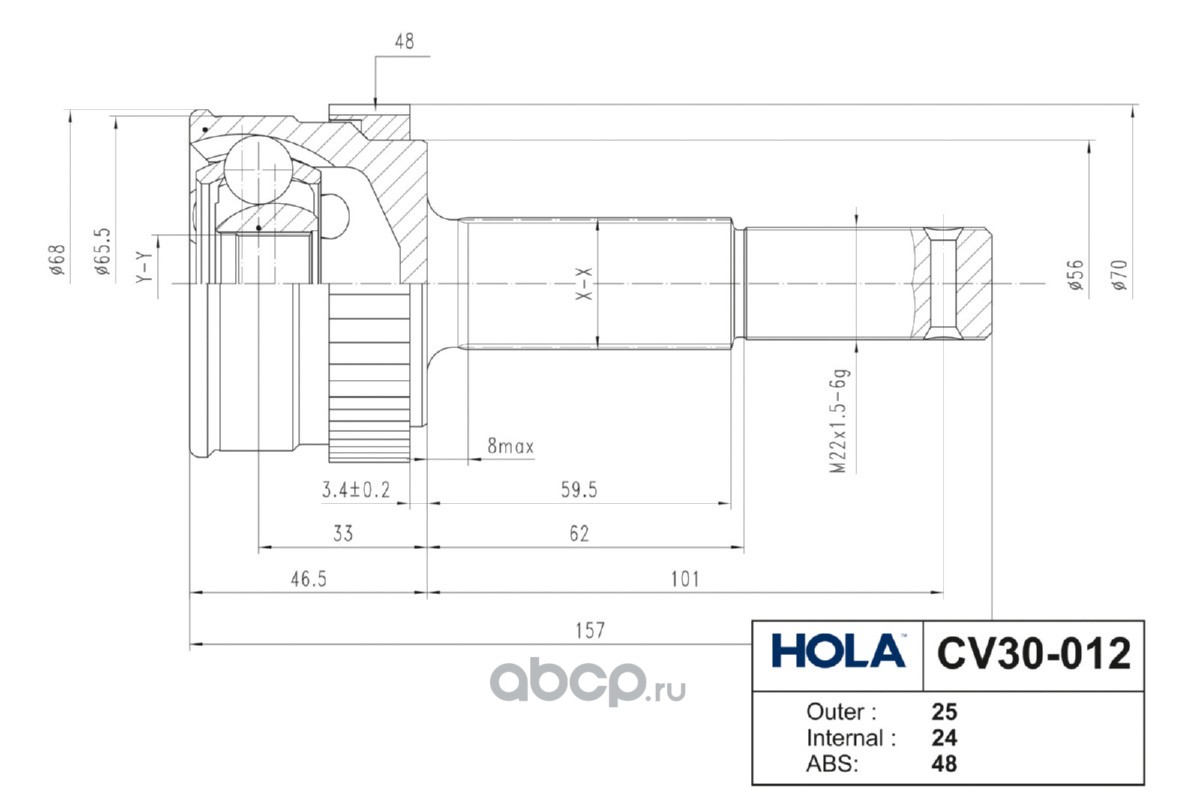 Расширенное описание: CV30-012, HOLA, ШРУС, наружный, задняя ось, левый/правый, 25/24 шл., NISSAN Qashqai (J10,J11), Qashqai +2 (JJ10), X-Trail (T31,T32); RENAULT Koleos I (HY), (1шт.)
