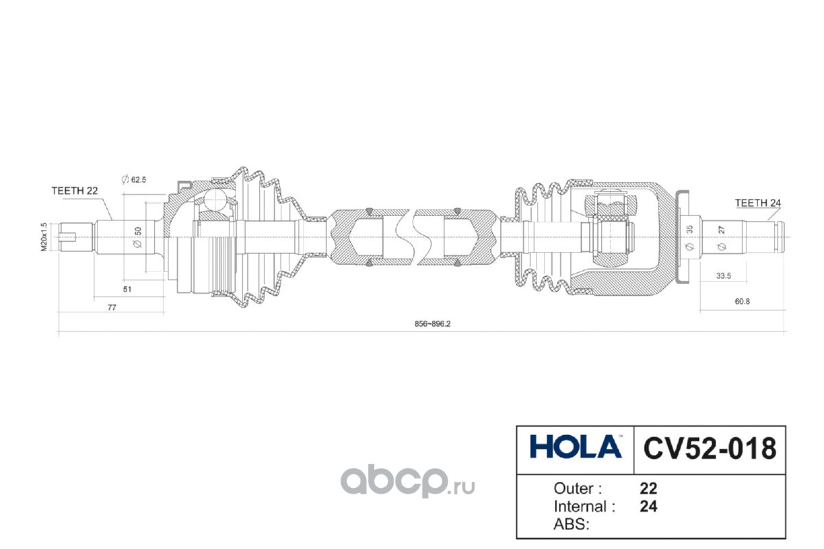 Расширенное описание: CV52-018, HOLA, Привод в сборе, правый, LADA 2110-12, Priora (2170-72), (1шт.)
