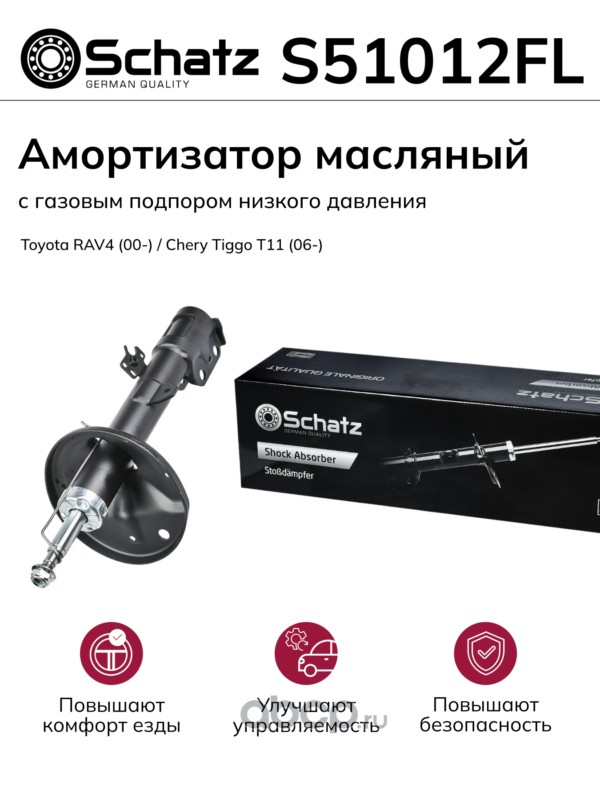 Schatz S51012FL Амортизатор Масляный с газовым подпором низкого давления Передний левый Toyota RAV4 (00-) / Chery Tiggo T11 (06-)