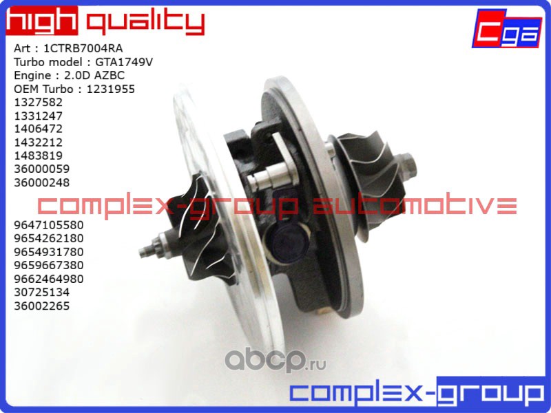 CGA 1CTRB7004RA Картридж турбины GTA1749V 2.0D AZBC