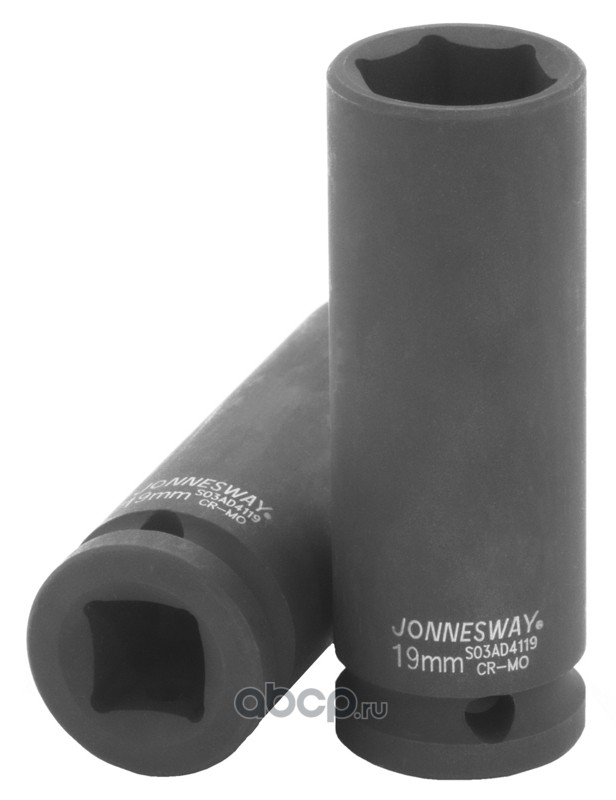 Торцевые насадки для механизированного инструмента по основной области применения практически не отличаются от тех, которые используются с ручным инструментом. Так же, как и в системах сборного слесарно-монтажного инструмента, насадки для механизированного инструмента привязаны к системам по размерам приводов, разделены на предметы для обслуживания внутренних и внешних рабочих профилей. Основные отличия кроются в материалах и технологиях, применяемых при производстве ударных насадок. Главное требование - устойчивость к постоянным динамическим нагрузкам, которая достигается применением специальной стали. Её основным легирующим элементом является молибден, придающий материалу свойства, обеспечивающие компромисс между твердостью и прочностью. Защитное покрытие, применяемое при изготовлении - фосфатирование, придает инструментам матовый черный цвет. Такое покрытие необходимо для дополнительной защиты изделий от коррозии, улучшения твердости контактных поверхностей и износостойкости.Торцевые головки глубокие (удлиненные) 1/2""DR применяются при обслуживании нагруженных и осложненных резьбовых соединений на относительно высоких шпильках и заглубленных деталях. Головки изготовлены из хромомолибденовой стали в соответствии со стандартом DIN 3129.По желанию заказчика возможна поставка торцевых головок для механизированного инструмента серии S03AD4 переходных размеров и головок размерами до 38 мм.