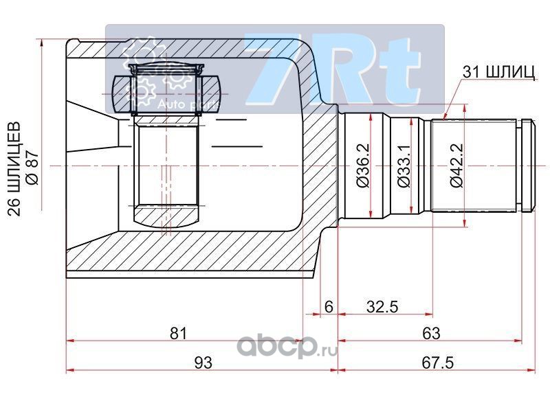 7Rt 777X777026 Шрус передний левый внутренний
