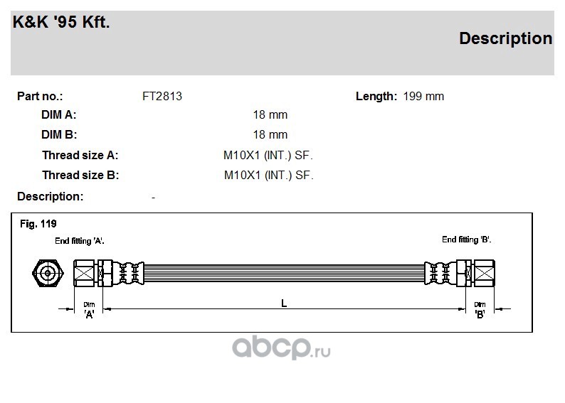 All World Cars - продажа товаров бренда K&K по всей России и странах СНГ. Развитая сеть представительств с быстрой доставкой товаров K&K и с гарантией выгодной цены. Покупая в AWC Шланг тормозной задн DAEWOO: ESPERO 1.5-2.0 95-97 вы бережете свое время, нервы и деньги. Каталожный номер производителя FT2813