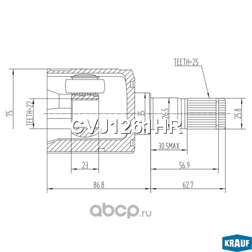 ШРУС ВНУТРЕННИЙ ПРАВЫЙ 22X35X25 |