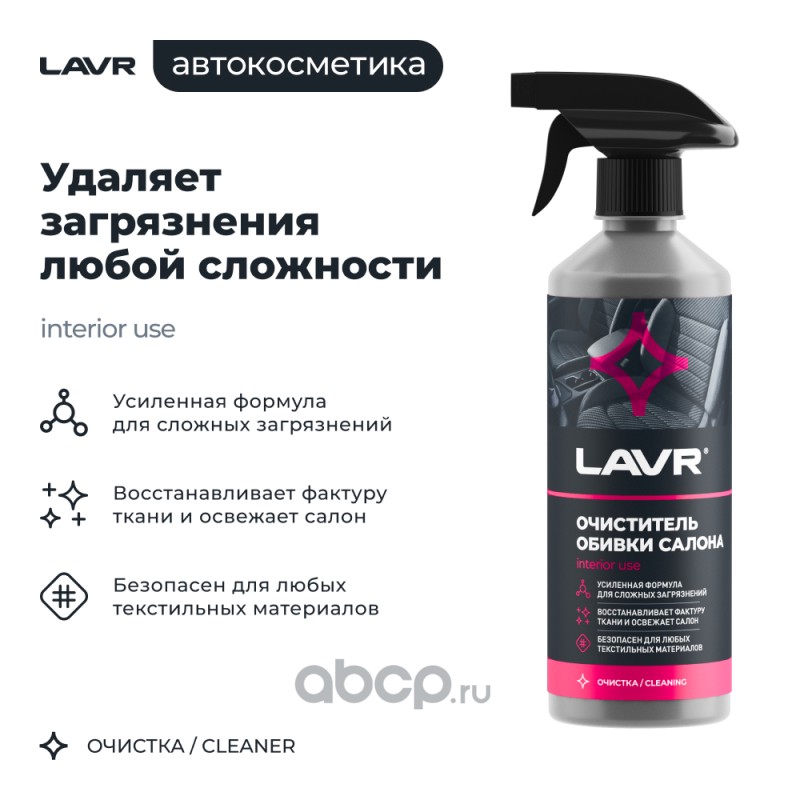 Расширенное описание: Ищете простой способ почистить сиденья? Очиститель обивки салона LAVR поможет быстро удалить даже сложные загрязнения с обивки сидений, потолков, дверных карт автомобиля. Легендарное средство образует обильную пену, создавая эффект «сухой химчистки». Состав экономично расходуется, быстро работает и сохнет. В этом уже убедились тысячи автовладельцев, которые любят, чтобы в салоне было чисто.