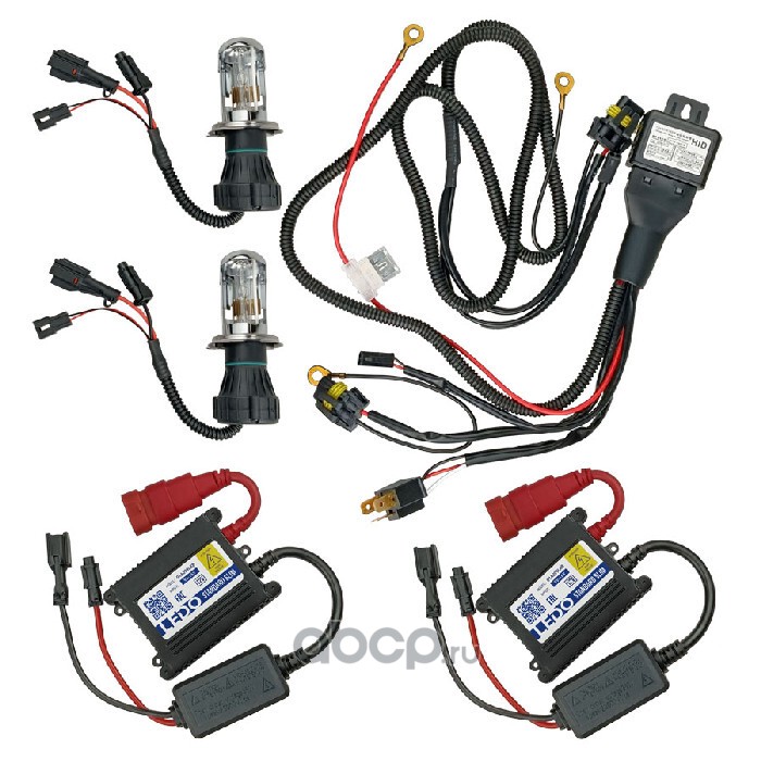 Расширенное описание: Характеристики: Цоколь: H4 ближний/дальний; Напряжение на входе: 12V; Потребляемая мощность 35W; Цветовая температура: 4300K (тёплый белый). В комплект биксенона входит: - 2 биксеноновые лампы H4 4300K; - 2 блока розжига SLIM 5 поколения; - реле для биксеноновых ламп.