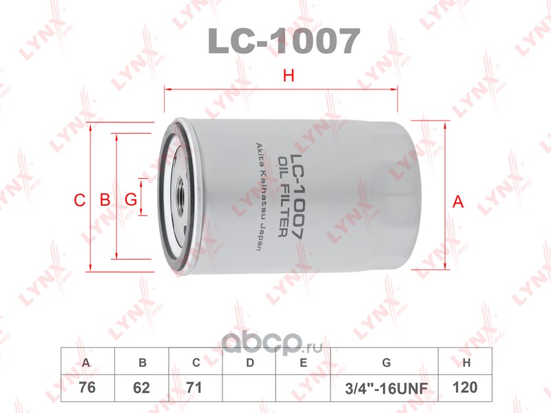All World Cars - продажа товаров бренда LYNXauto по всей России и странах СНГ. Развитая сеть представительств с быстрой доставкой товаров LYNXauto и с гарантией выгодной цены. Покупая в AWC Фильтр масляный вы бережете свое время, нервы и деньги. Каталожный номер производителя LC1007