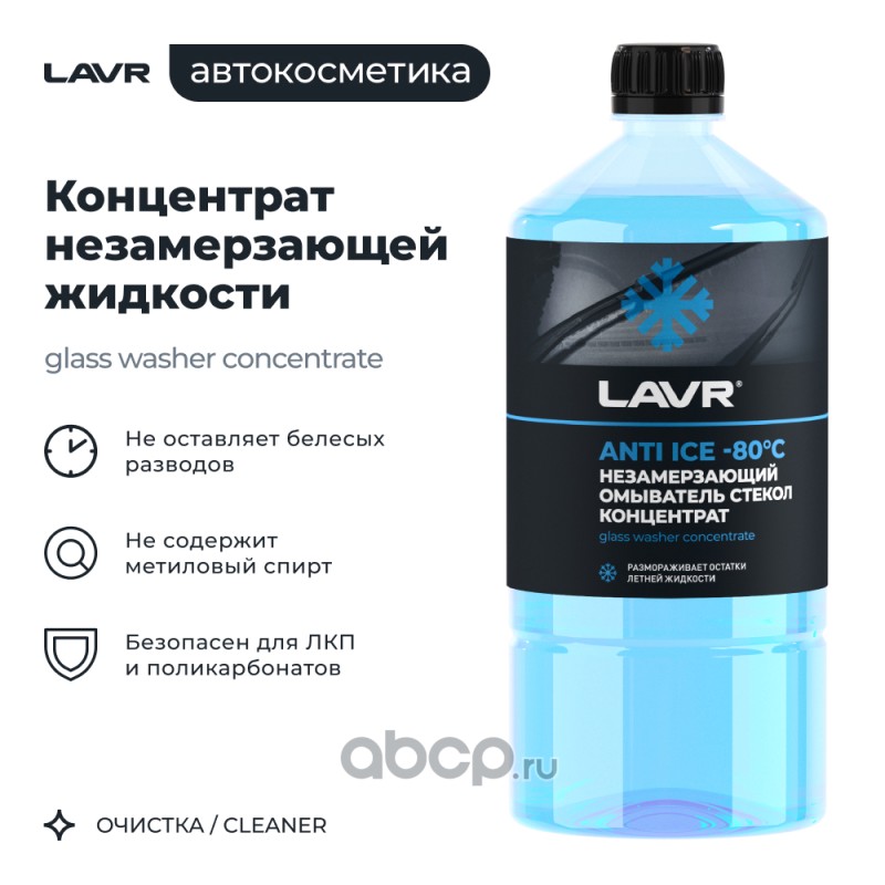 All World Cars - продажа товаров бренда Lavr по всей России и странах СНГ. Развитая сеть представительств с быстрой доставкой товаров Lavr и с гарантией выгодной цены. Покупая в AWC Концентрат незамерзающей жидкости 1л для стекол (-80C) вы бережете свое время, нервы и деньги. Каталожный номер производителя LN1324