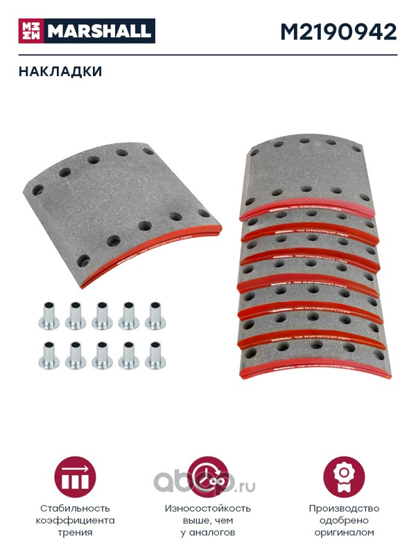 Накладки торм. компл. (2 рем.) (с заклеп.) WVA 19094 (M2190942)