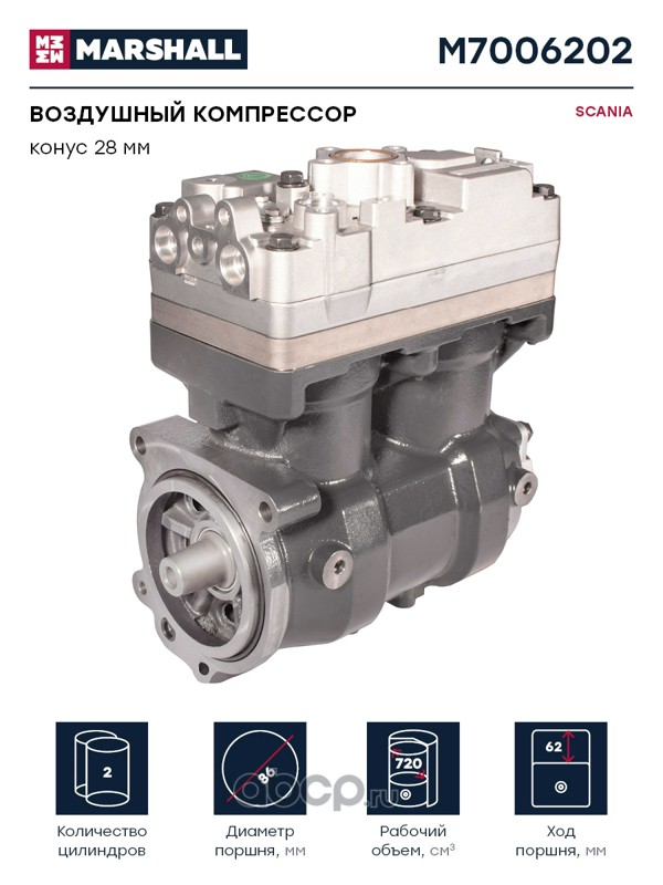 Воздушный компрессор SCANIA двухцилинд. 720 cc, конус 28 мм, о.н. K024410X00 (M7006202)