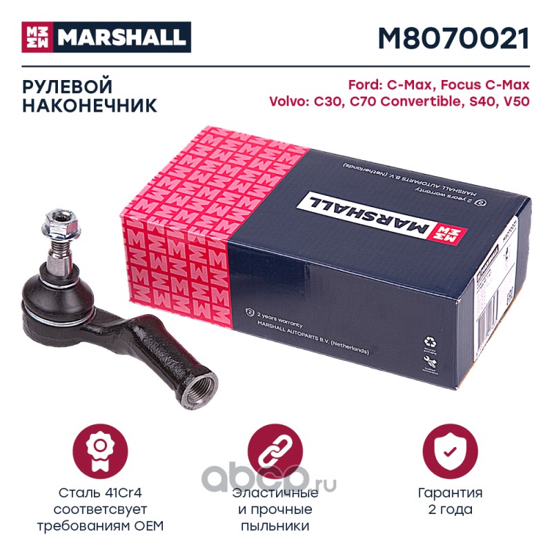 Расширенное описание: Наконечник рулевой лев. Ford C-Max 07-, Focus 03-; Volvo C30 06-, C70 06-, S40 04-, V50 04- (M8070021)