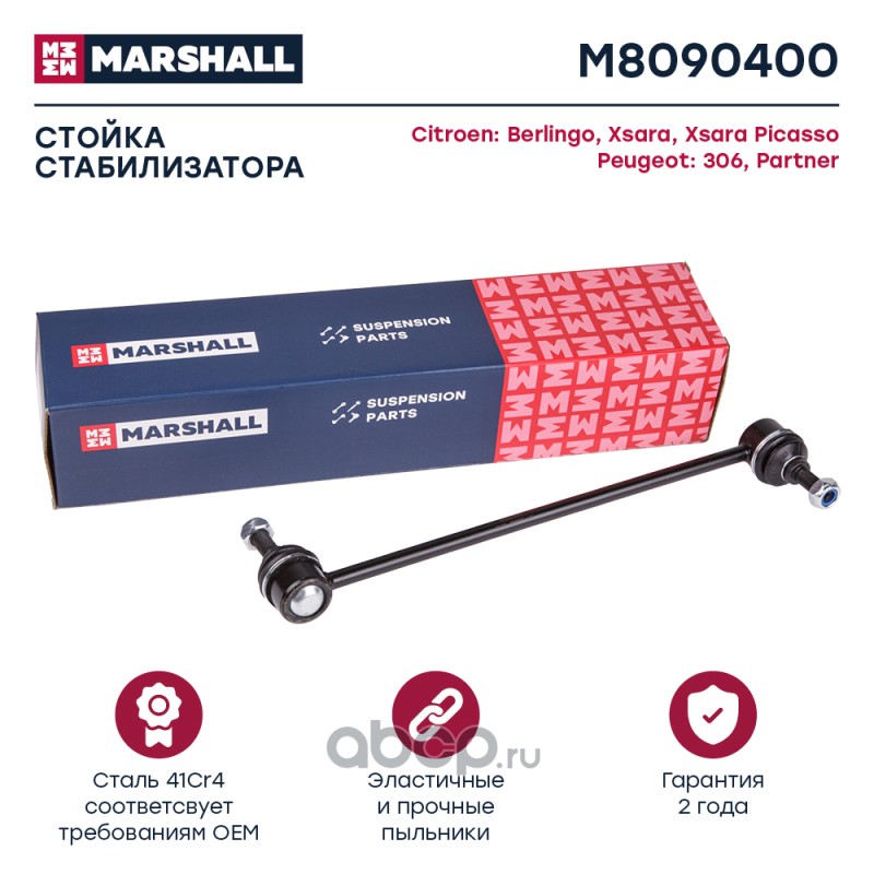 All World Cars - продажа товаров бренда MARSHALL по всей России и странах СНГ. Развитая сеть представительств с быстрой доставкой товаров MARSHALL и с гарантией выгодной цены. Покупая в AWC M8090400_стойка стабилизатора передн. лев./прав. Citroen Berlingo 96>/Xsara Picasso 99> вы бережете свое время, нервы и деньги. Каталожный номер производителя M8090400
