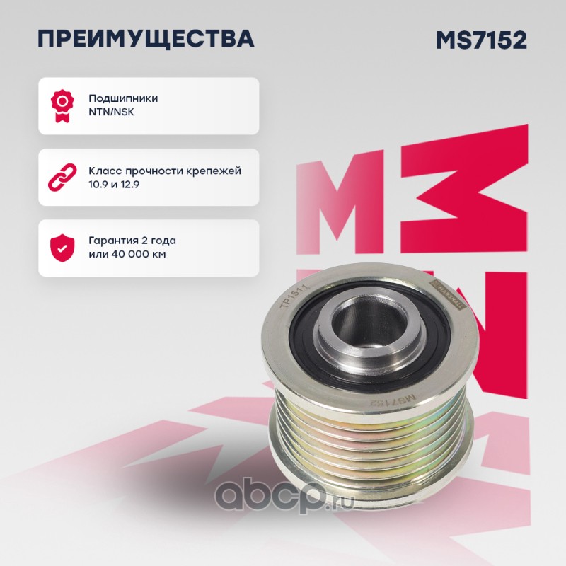 Расширенное описание: Ролик прив. ремня Nissan Qashqai I, II 07- / X-Trail II 07-; Opel Movano B 10-; Renault Duster I 11- (MS7152)