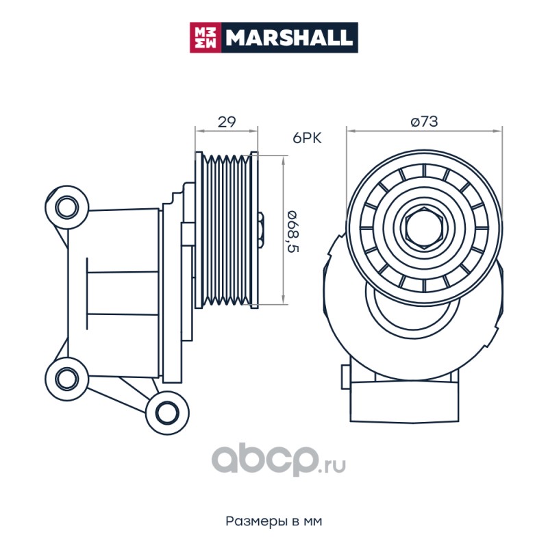 Расширенное описание: Натяжитель прив. ремня Ford C-Max I 07- / Focus II 04-; Mazda 3 I (BK), II (BL) 03-; Volvo S40 II 04- (MS9827)