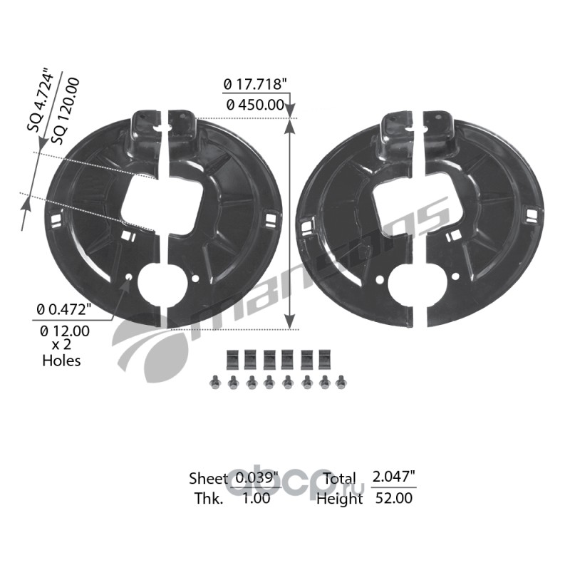 Защита тормозная SN 4218 BPW95 кв. балка к-т на ось с установочными болтами и заглушками, аналог BPW