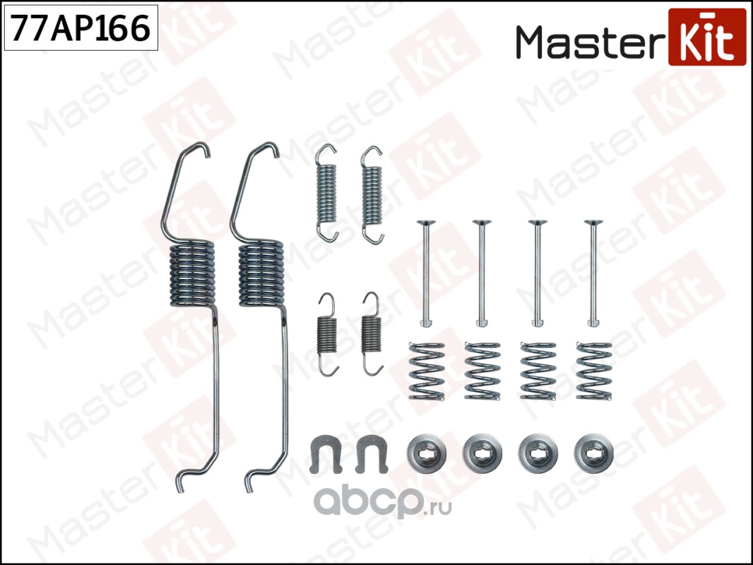 All World Cars - продажа товаров бренда MasterKit по всей России и странах СНГ. Развитая сеть представительств с быстрой доставкой товаров MasterKit и с гарантией выгодной цены. Покупая в AWC Комплект установочный барабанных колодок вы бережете свое время, нервы и деньги. Каталожный номер производителя 77AP166