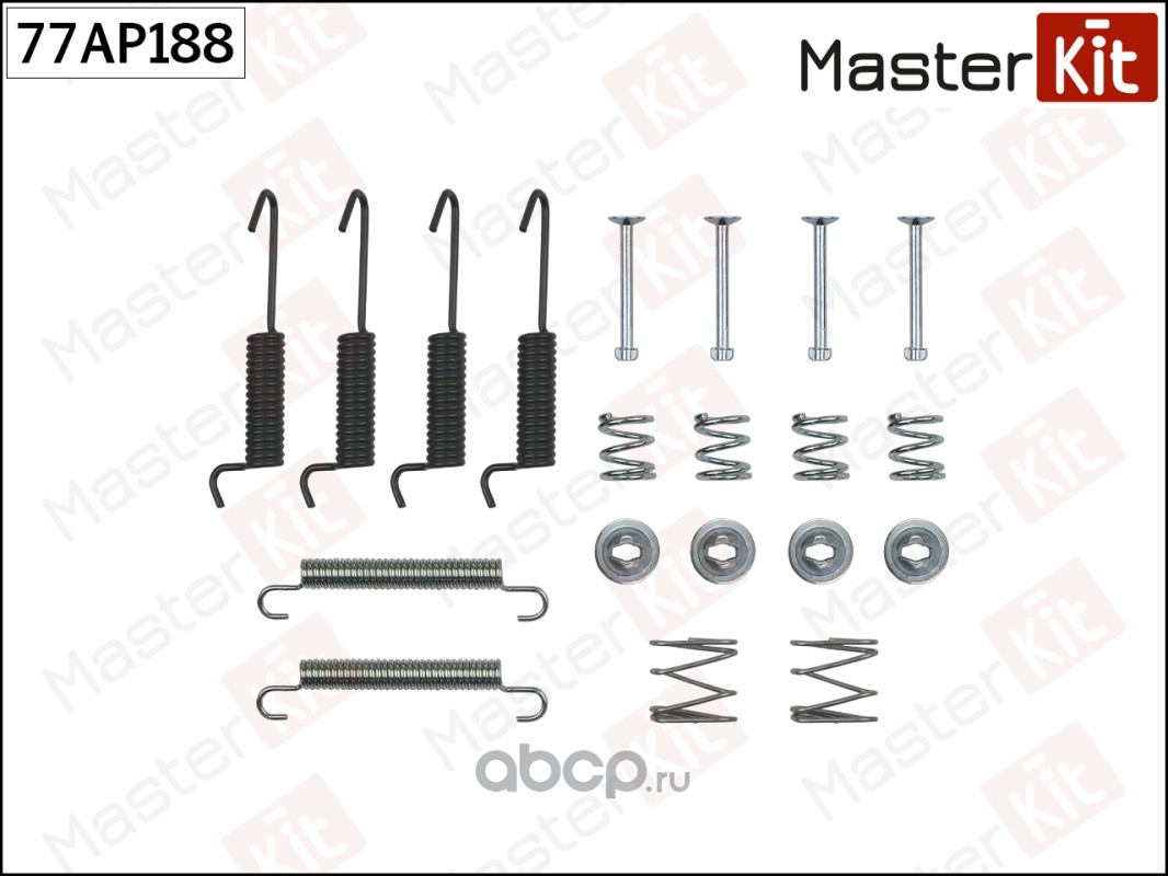 All World Cars - продажа товаров бренда MasterKit по всей России и странах СНГ. Развитая сеть представительств с быстрой доставкой товаров MasterKit и с гарантией выгодной цены. Покупая в AWC Комплект установочный барабанных колодок вы бережете свое время, нервы и деньги. Каталожный номер производителя 77AP188