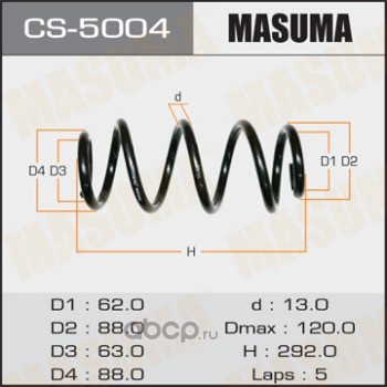 All World Cars - продажа товаров бренда Masuma по всей России и странах СНГ. Развитая сеть представительств с быстрой доставкой товаров Masuma и с гарантией выгодной цены. Покупая в AWC Пружина задн. вы бережете свое время, нервы и деньги. Каталожный номер производителя CS5004