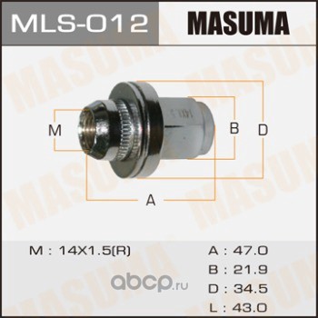 All World Cars - продажа товаров бренда Masuma по всей России и странах СНГ. Развитая сеть представительств с быстрой доставкой товаров Masuma и с гарантией выгодной цены. Покупая в AWC Гайка колесная вы бережете свое время, нервы и деньги. Каталожный номер производителя MLS012