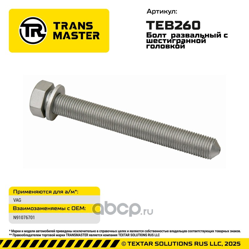 TRANSMASTER TEB260 Болт развальный с шестигранной головкой