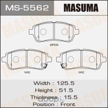 All World Cars - продажа товаров бренда Masuma по всей России и странах СНГ. Развитая сеть представительств с быстрой доставкой товаров Masuma и с гарантией выгодной цены. Покупая в AWC Колодки тормозные дисковые вы бережете свое время, нервы и деньги. Каталожный номер производителя MS5562
